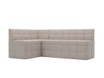 Кухонный угловой диван Атлантис левый (118х195) станет стильным и функциональным акцентом для кухни-гостиной. Модель в бежевой обивке с белым каркасом подчеркивает светлый интерьер и создаёт уютное место как для дневного отдыха, так и для ночного сна. Левый угол обеспечивает оптимальное размещение в помещении и удобство пользования.