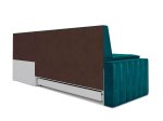 - обивка в сине-зеленых и синих тонах; каркас белого цвета; ножки из пластика черного цвета. Комбинация напоминает стильный модерн и хорошо сочетается с различными оттенками мебели и стен.